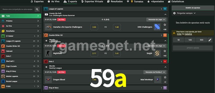O 59a oferece uma grande seleção de opções de apostas em e-sports com probabilidades competitivas